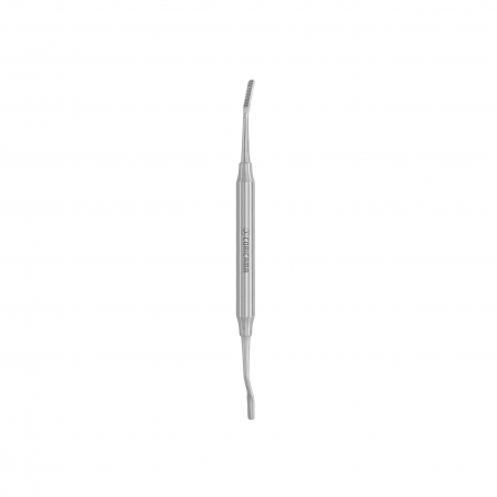 Instrument with various shapes and cutting surfaces. One or both distal working ends are used to cut and smooth (file) bone tissue.