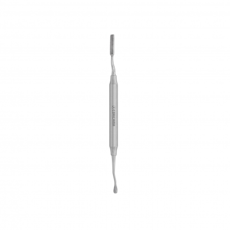 Instrument with various shapes and cutting surfaces. One or both distal working ends are used to cut and smooth (file) bone tissue.