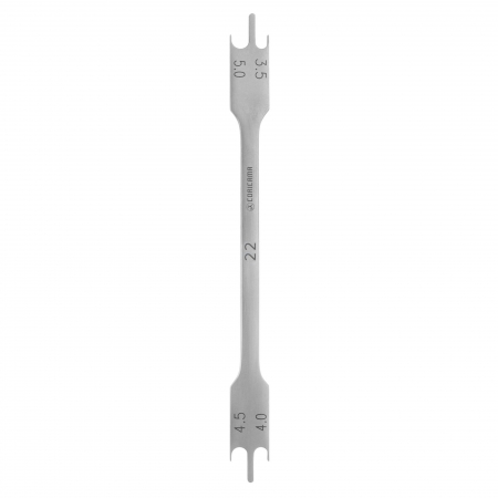 Bracket height Gauge. It marks heights of 3.5 mm, 4.0 mm, 4.5 mm and 5.0 mm.
