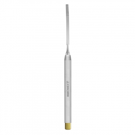 To cut and shape the bone. The surgeon can use a surgical mallet/hammer to manually impart an impact force to the proximal end of the instrument. The distal end (the cutting or shaping edge) is sharp and can be flat or curved [(concave) – aka: hollow blade].
