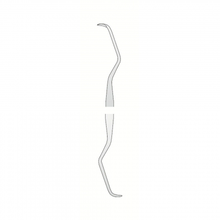 For the removal of sub-gingival calculus and root cleaning. With a semicircular tip used at 90° to the root surface of the tooth. Sharpened on both sides of the blades.