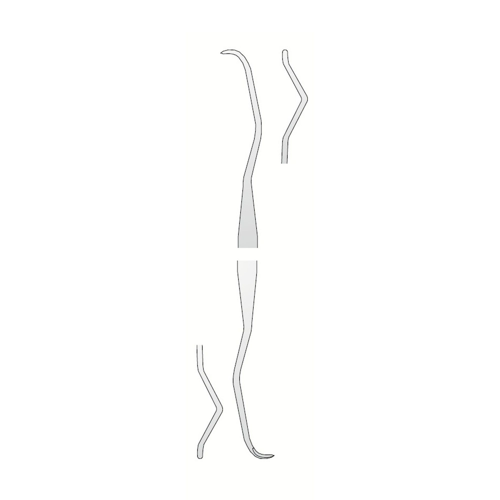 For subgingival calculus removal and root cleaning. Gracey curettes are the most popular and appreciated because they are less traumatic than Universal curettes. Gracey curettes are divided by type of treatment: each curette is designed to eliminate calculus on a specific area. The blade is oriented and offset according to the design and is sharpened on one side only.
