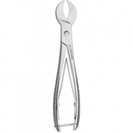 (aka: Plaster Nipper) Manual cutting instrument with a short, curved, toothed blade that is used to saw through or trim laboratory plaster.
