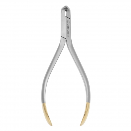 Cuts the wire distally flush to the buccal tube, holding securely the portion of wire cut thanks to its “U” shaped tips.