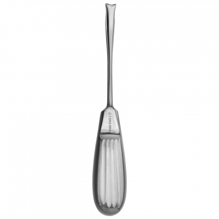 Used as a lever for the extraction of a tooth or retained roots. It is pushed in between the gums and the external part of the tooth and used to loosen the tissue surrounding the tooth. The blade transmits a force, generated by rotating the handle around its long axis, to the surface of the tooth or root. This produces the displacement of the tooth away from the point of application where the elevator comes into contact with the tooth. The force may be applied perpendicularly to the tooth, with the elevator placed in the interdental space, or along its long axis. Since considerable force is applied to the tooth, it’s necessary to prevent the elevator from slipping. During its use, the operator’s index finger should therefore be extended over the length of the blade to act as a support on adjacent hard tissues. The curved blade of the elevator is placed on the root surface, thus lying between the tooth and the alveolar bone which acts as a fulcrum around which the elevator is turned. The rotation of the elevator will produce a force which dislocates the tooth and tends to displace it out of its socket. An equal force will also be applied to the fulcrum, so it is important to ensure that this alveolar bone is capable of resisting such a force and that is not an adjacent tooth which may, as a result, become inadvertently loosened or displaced. Elevators must be used with caution when extracting teeth to avoid generating excessive and potentially damaging forces.