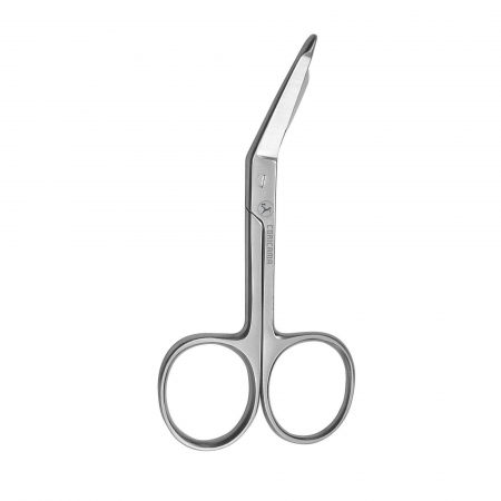 Bandage scissors, or bandage forceps, are angled scissors, with a blunt tip on the bottom blade, which helps in cutting bandages without gouging the skin. Designed to safely lift bandages away from skin with an easy cut. The bottom blade is longer and goes easily under the bandages. The blunt tip design prevents accidental injury while making bandage removal very easy, smooth, and quick.