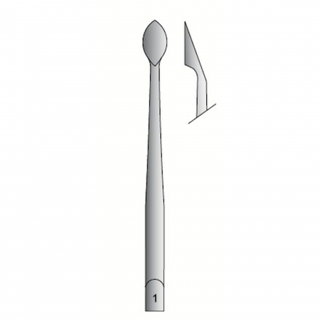 For cutting desmodontal fibres and for detaching the alveolo-dental ligaments.
