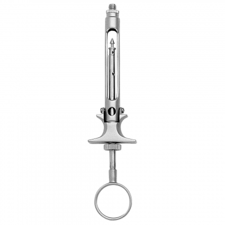DENTAL ANAESTHETIC CARTRIDGE SYRINGE – Leur-Lok Breach Loading / Basal-loading / Rear-loading / Harpon Type: the piston is retracted and rotated to allow the insertion of the carpule into the syringe barrel.