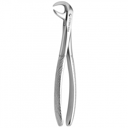 The operator must find the forceps with the most suitable grip and the blades should adapt to the tooth with its beaks grasping the root bifurcations. When using forceps to extract a tooth, two types of movements are made. First, the gingival and periodontal ligament are cut: the blades should be positioned below the gingival margin on the buccal and lingual parts of the tooth and then driven with increasing force in an apical direction. In this way,they slide over the length of the root surface to the final part rather than gripping it from the outset. Positioning the forceps in the most apical position possible ensures that the mechanical efficiency of subsequent extraction movements is maximal and the risk of root fracture is minimized. The second movement removes the tooth from the alveolus. Whilst the apical position reach in the first movement is maintained, the tooth should be gripped firmly with the blades and dislocated from its bony socket. This allows the alveolus to dilate and the tooth to be lifted out. The movements involved should be slow and targeted, allowing the alveolus to expand; their direction will be determined by the anatomy and position of the tooth being removed.