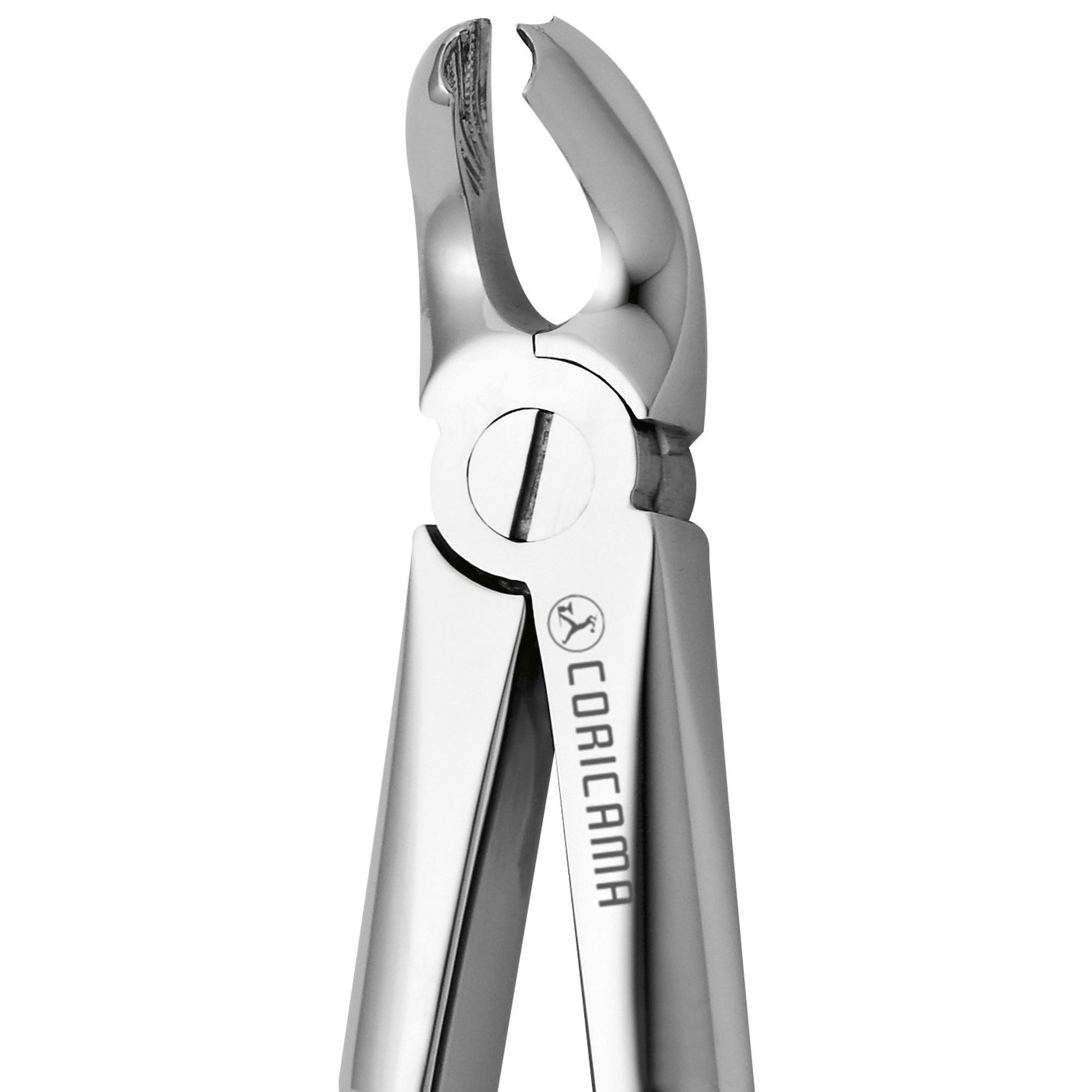 The operator must find the forceps with the most suitable grip and the blades should adapt to the tooth with its beaks grasping the root bifurcations. When using forceps to extract a tooth, two types of movements are made. First, the gingival and periodontal ligament are cut: the blades should be positioned below the gingival margin on the buccal and lingual parts of the tooth and then driven with increasing force in an apical direction. In this way,they slide over the length of the root surface to the final part rather than gripping it from the outset. Positioning the forceps in the most apical position possible ensures that the mechanical efficiency of subsequent extraction movements is maximal and the risk of root fracture is minimized. The second movement removes the tooth from the alveolus. Whilst the apical position reach in the first movement is maintained, the tooth should be gripped firmly with the blades and dislocated from its bony socket. This allows the alveolus to dilate and the tooth to be lifted out. The movements involved should be slow and targeted, allowing the alveolus to expand; their direction will be determined by the anatomy and position of the tooth being removed.