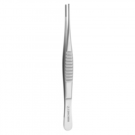 Atraumatic (cushing) tissue tweezer, for gripping membrane and tissue safely. The special serration prevents the perforation of the tissue. Atraumatic tissue forceps used to avoid tissue damage during manipulation.
