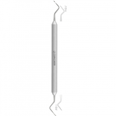 Designed to fit and reach the interproximal spaces to be treated. Blade / cutting edge with different angles and curvatures relative to the shank.
