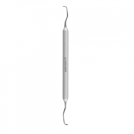 For subgingival calculus removal and root cleaning. Gracey curettes are the most popular and appreciated because they are less traumatic than Universal curettes. Gracey curettes are divided by type of treatment: each curette is designed to eliminate calculus on a specific area. The blade is oriented and offset according to the design and is sharpened on one side only.