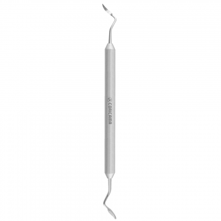 Designed to adapt to all teeth surfaces to be treated. Sharpened on both sides. Blades/Cutting Edges perpendicular (90°) to the shank. Triangular cross section and pointed tip/toe for an easier removal of heavy supra-gingival calculus.