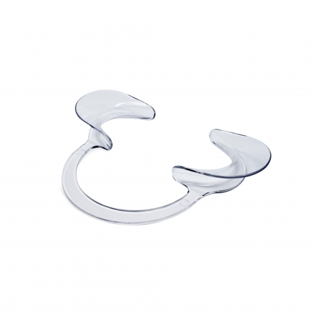 Plastic self-retaining photographic lip retractor. Smoothed and rounded edges to avoid impinging on the gingivae and minimize discomfort for the patient.