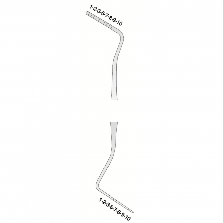 With its long, thin and blunt tip, it measures the depth of the pocket around the tooth in order to establish the state of health of the periodontium. The instrument has marks engraved on its head/tip for greater precision and legibility.