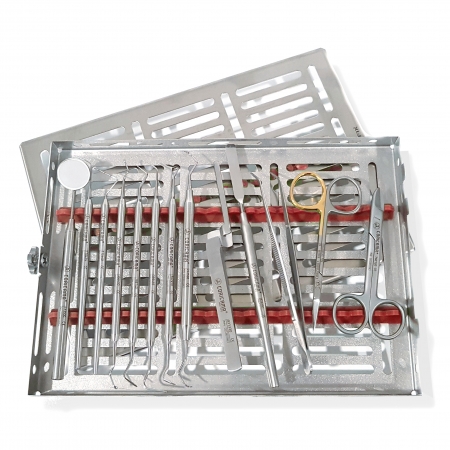 PLATEAU GAMMAFIX QUATRI VERT, MANCHE MIROIR MOD. LISSE ø 8mm + MIROIR N.5 RHODIUM, SONDE D’EXAMEN N. 6, SONDE CP15 UNIVERSITÉ DE CAROLINE DU NORD, EXCAVATEUR N.125/126, POSITIONNEUR DE FIL RÉTRACTION – UNIVERSEL, INSTRUMENTS POUR LE TRAITAMENT DES CAVITÉS mm6.5/16, INSTRUMENT À SCULPTER HOLLENBACK 3, SPATULE À CIMENT N.24, PRÉCELLE COLLEGE mm150, PRÉCELLE POUR PAPIER D’ARTICULATION DROIT, CISEAU IRIS mm115 SUPERIOR CUT, CISEAU BEEBEE mm110, CURETTE TYPE SWISS UNIVERSELLE