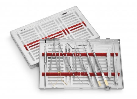 MANCHE POUR MICRO-MIROIRS ET MICRO-LAMES LISSE, MICRO – MIROIR POINTU, PORTE-AIGUILLES CASTROVIEJO mm180 R TC, PORTE-AIGUILLES CASTROVIEJO mm180 R COURBE TC , CISEAU MICROCHIRURGICAL mm150, CISEAU MICROCHIRURGICAL mm150 COURBE, ÉCARTEUR GILLIES MOYEN mm180, PRÉCELLE GERALD mm175 mm0.9 1×2, PRÉCELLE GERALD mm175 mm0.9 1×2 COURBE, PRÉCELLE MICRO ADSON mm0.6 1×2 , PRÉCELLE DE BAKEY MM1.5 ANGLÉ, PLATEAU GAMMAFIX CINC ROUGE