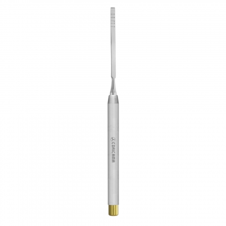 To cut and shape the bone. The surgeon can use a surgical mallet/hammer to manually impart an impact force to the proximal end of the instrument. The distal end (the cutting or shaping edge) is sharp and can be flat or curved [(concave) – aka: hollow blade].
