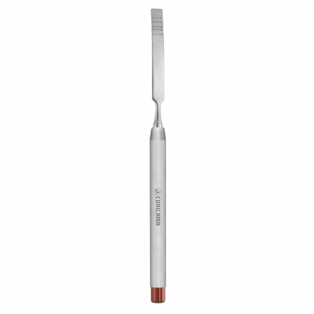 To cut and shape the bone. The surgeon can use a surgical mallet/hammer to manually impart an impact force to the proximal end of the instrument. The distal end (the cutting or shaping edge) is sharp and can be flat or curved [(concave) – aka: hollow blade].