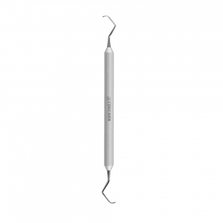 For subgingival calculus removal and root cleaning. Gracey curettes are the most popular and appreciated because they are less traumatic than Universal curettes. Gracey curettes are divided by type of treatment: each curette is designed to eliminate calculus on a specific area. The blade is oriented and offset according to the design and is sharpened on one side only.