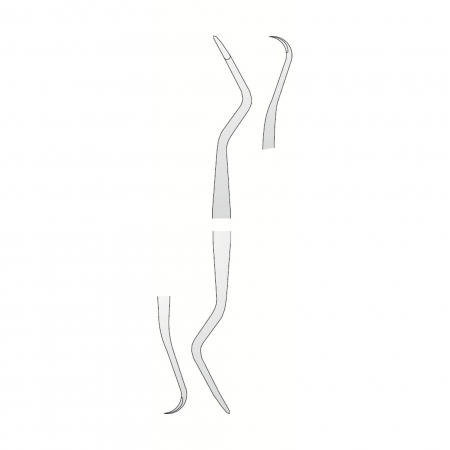 For the removal of sub-gingival calculus and root cleaning. Universal curettes can be used in any area of the mouth with a semicircular tip used at 90° to the root surface of the tooth. Sharpened on both sides of the blades.