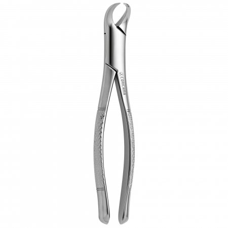 The operator must find the forceps with the most suitable grip and the blades should adapt to the tooth with its beaks grasping the root bifurcations. When using forceps to extract a tooth, two types of movements are made. First, the gingival and periodontal ligament are cut: the blades should be positioned below the gingival margin on the buccal and lingual parts of the tooth and then driven with increasing force in an apical direction. In this way,they slide over the length of the root surface to the final part rather than gripping it from the outset. Positioning the forceps in the most apical position possible ensures that the mechanical efficiency of subsequent extraction movements is maximal and the risk of root fracture is minimized. The second movement removes the tooth from the alveolus. Whilst the apical position reach in the first movement is maintained, the tooth should be gripped firmly with the blades and dislocated from its bony socket. This allows the alveolus to dilate and the tooth to be lifted out. The movements involved should be slow and targeted, allowing the alveolus to expand; their direction will be determined by the anatomy and position of the tooth being removed.