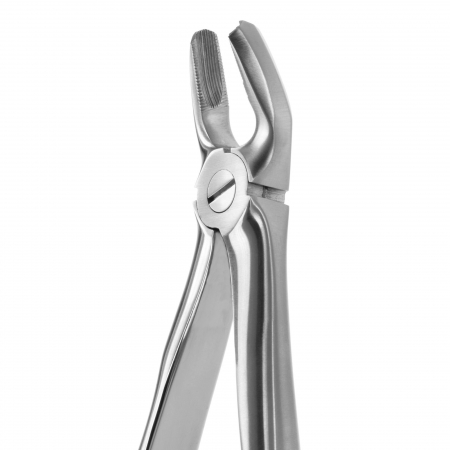 The beaks have concave inner surfaces with pointed projection on the tips. These forceps work well in grasping the crown with the two projecting tips extending to the bifurcation between the roots on mandibular molars. Handles are straight.