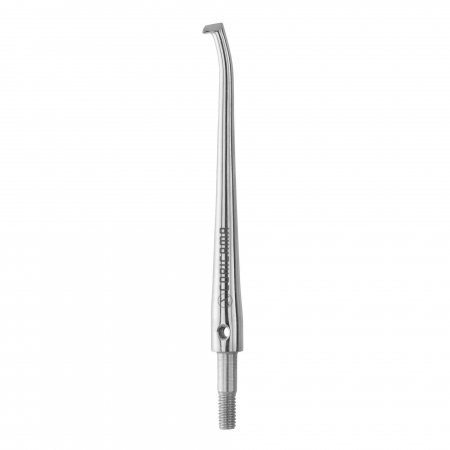 AUTOMATIC Crown Remover: attached by the tip to the crown to be removed, it transmits an impact force to the crown without striking the object itself. It consists of a handle with a lever and an attachment point at one end. By simply pressing the lever, an automatic system inside the handle is activated and creates an impact force against the attachment point on the tip hooked to the crown to be removed.