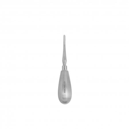 Used as a lever for the extraction of a tooth or retained roots. It is pushed in between the gums and the external part of the tooth and used to loosen the tissue surrounding the tooth. The blade transmits a force, generated by rotating the handle around its long axis, to the surface of the tooth or root. This produces the displacement of the tooth away from the point of application where the elevator comes into contact with the tooth. The force may be applied perpendicularly to the tooth, with the elevator placed in the interdental space, or along its long axis. Since considerable force is applied to the tooth, it’s necessary to prevent the elevator from slipping. During its use, the operator’s index finger should therefore be extended over the length of the blade to act as a support on adjacent hard tissues. The curved blade of the elevator is placed on the root surface, thus lying between the tooth and the alveolar bone which acts as a fulcrum around which the elevator is turned. The rotation of the elevator will produce a force which dislocates the tooth and tends to displace it out of its socket. An equal force will also be applied to the fulcrum, so it is important to ensure that this alveolar bone is capable of resisting such a force and that is not an adjacent tooth which may, as a result, become inadvertently loosened or displaced. Elevators must be used with caution when extracting teeth to avoid generating excessive and potentially damaging forces.