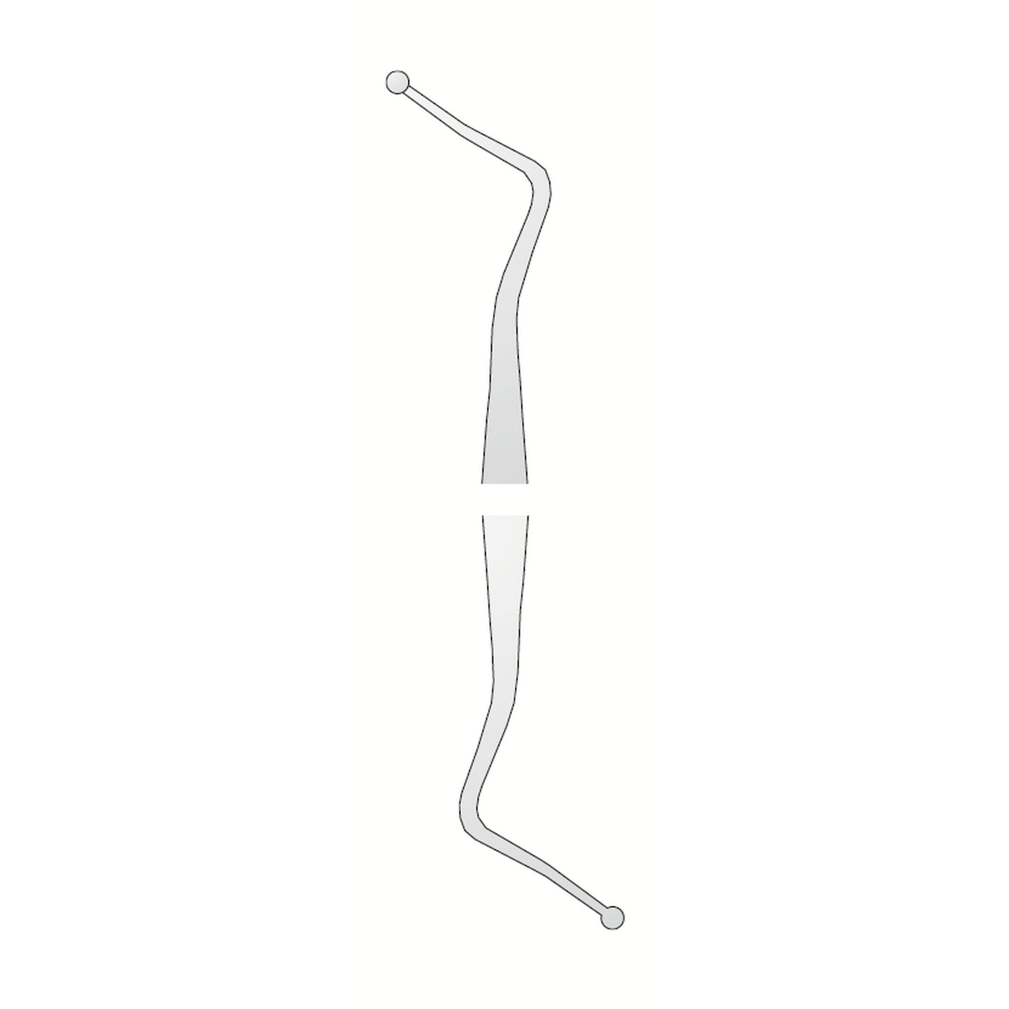 With a longer shank to allow curettage and carious dentine removal in the pulp chamber.