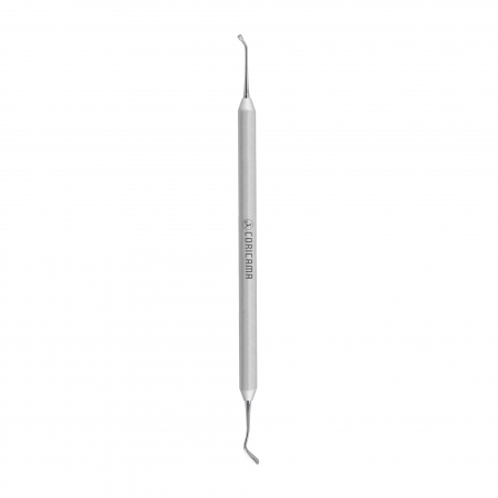 Woodson is the combination of a carrier and a condenser. The flat paddle-shaped end is used to carry the temporary cement and composites into the prepared cavity, and the plugger end is used to condense the material.