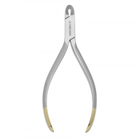 Delicate cutter with a fine tip for easy access to difficult areas. For elastics, ligatures, pins and light stainless steel wire.