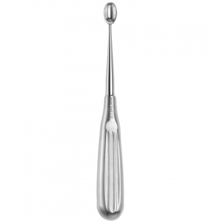 Utilizzato per il taglio e la rimozione di tessuto osseo. Progettato come strumento lungo e sottile, con un manico all’estremità prossimale e una punta lavorante concava, a forma di cucchiaio e con bordo affilato, in corrispondenza dell’estremità distale.