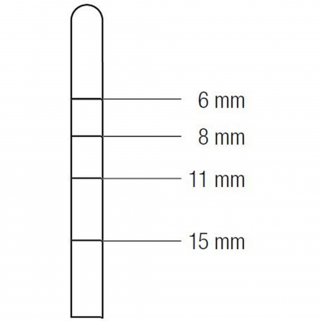 6 – 8 – 11 – 15 mm – Per la condensazione ossea laterale, con punta arrotondata per minimizzare il rischio di perforazione della membrana sinusale (Schneideriana). La speciale forma a baionetta viene utilizzata nelle operazioni di elevazione del seno mascellare nella regione laterale della mascella superiore o in aree mascellari di difficile accesso.