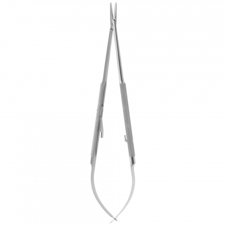 Usato per afferrare gli aghi da sutura durante la sutura quando si spinge/tira l’ago e si sutura attraverso il tessuto. Ha ganasce seghettate corte all’estremità distale per assicurare una migliore presa dell’ago ed è disponibile in un’ampia varietà di dimensioni e modelli, ad esempio: 1) un design a forbice autobloccante con branche ad anello all’estremità prossimale; 2) un design a pinzetta con estremità ad arco che vengono utilizzate premendole insieme; e 3) un design a pinza ad alta resistenza. Alcuni modelli possono presentare inserti in materiali duri (ad esempio, carburo di tungsteno) e includere lame a forbice.