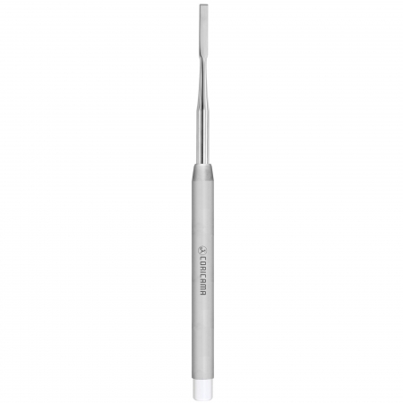 Per tagliare e modellare l’osso. Il chirurgo può utilizzare un martello/martello chirurgico per impartire manualmente un forza di impatto all’estremità prossimale dello strumento. L’estremità distale (spigolo da taglio o per modellare) è tagliente, e può essere piana o curva [(concava) – nota anche come lama cava].